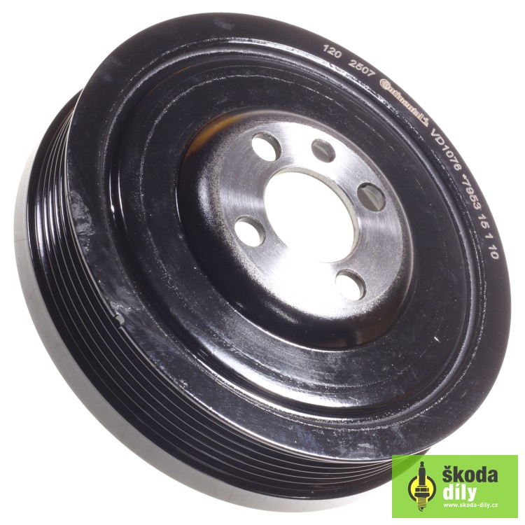 Tlmič vibrácii kľukového hriadeľa, určený pre vozidlá s motorizáciou 1.6TDI CR 66kW/77kW/81kW/85kW/88kW, 1.9TDI 66kW/74kW/77kW/81kW/96kW, 1.9SDI 50kW, 2.0TDI 85kW/100kW/103kW/110kW/125kW/135kW/142kW.