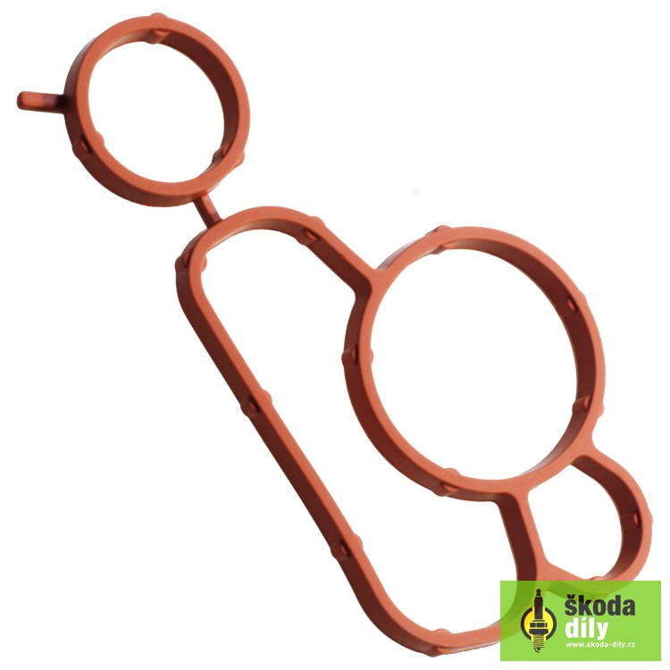 tesnenie medzi držiaku olejového filtra a napínacieho prvku klinového remeňa, určené pre vozidlá s motorizáciou 1.8TSI 112kW/118kW s označením (BZB, CDAA, CDAB), 2.0TSI 147kW (CCZA)