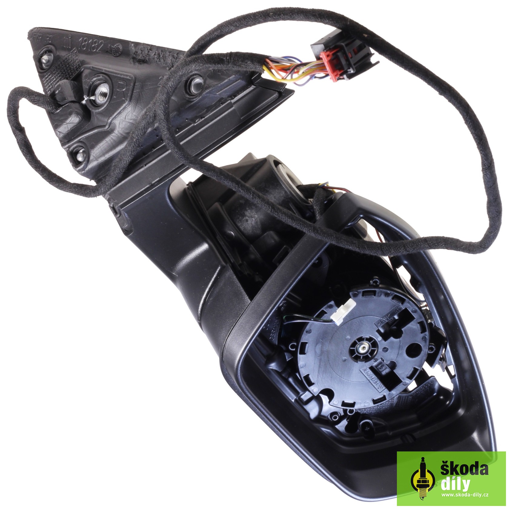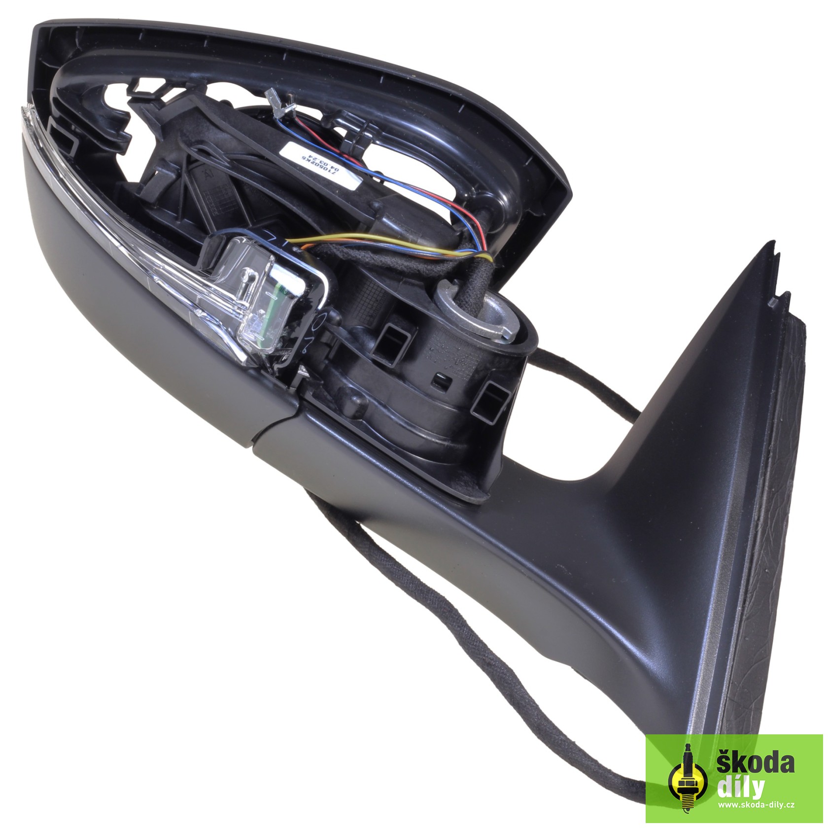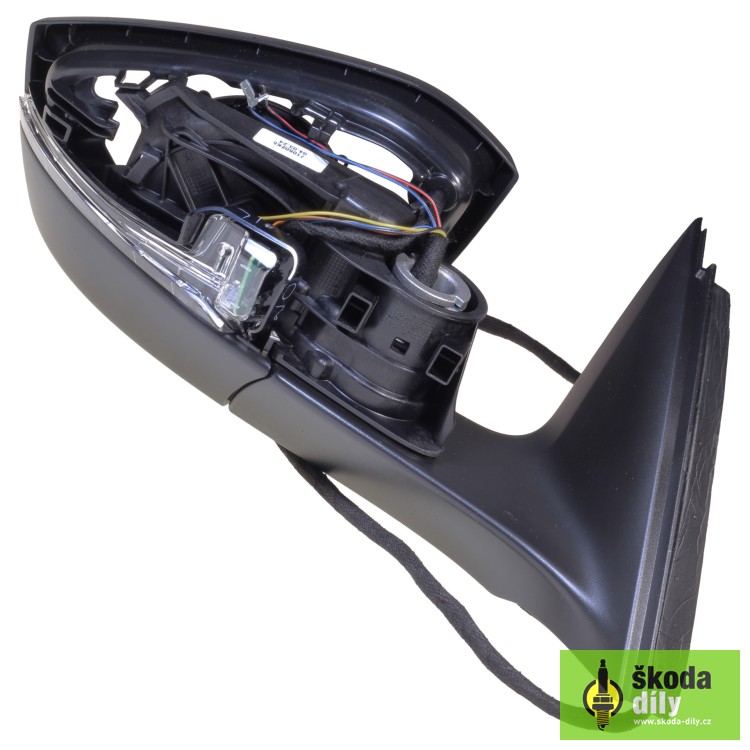 Puzdro pre pravé vonkajšie spätné zrkadlo (rameno, nastavovacie jednotka, smerovku, osvetlenie nástupného priestoru a rámček skla), elektricky ovládané, elektricky sklopiteľnými a vyhrievanými spätnými zrkadlami s pamäťou.