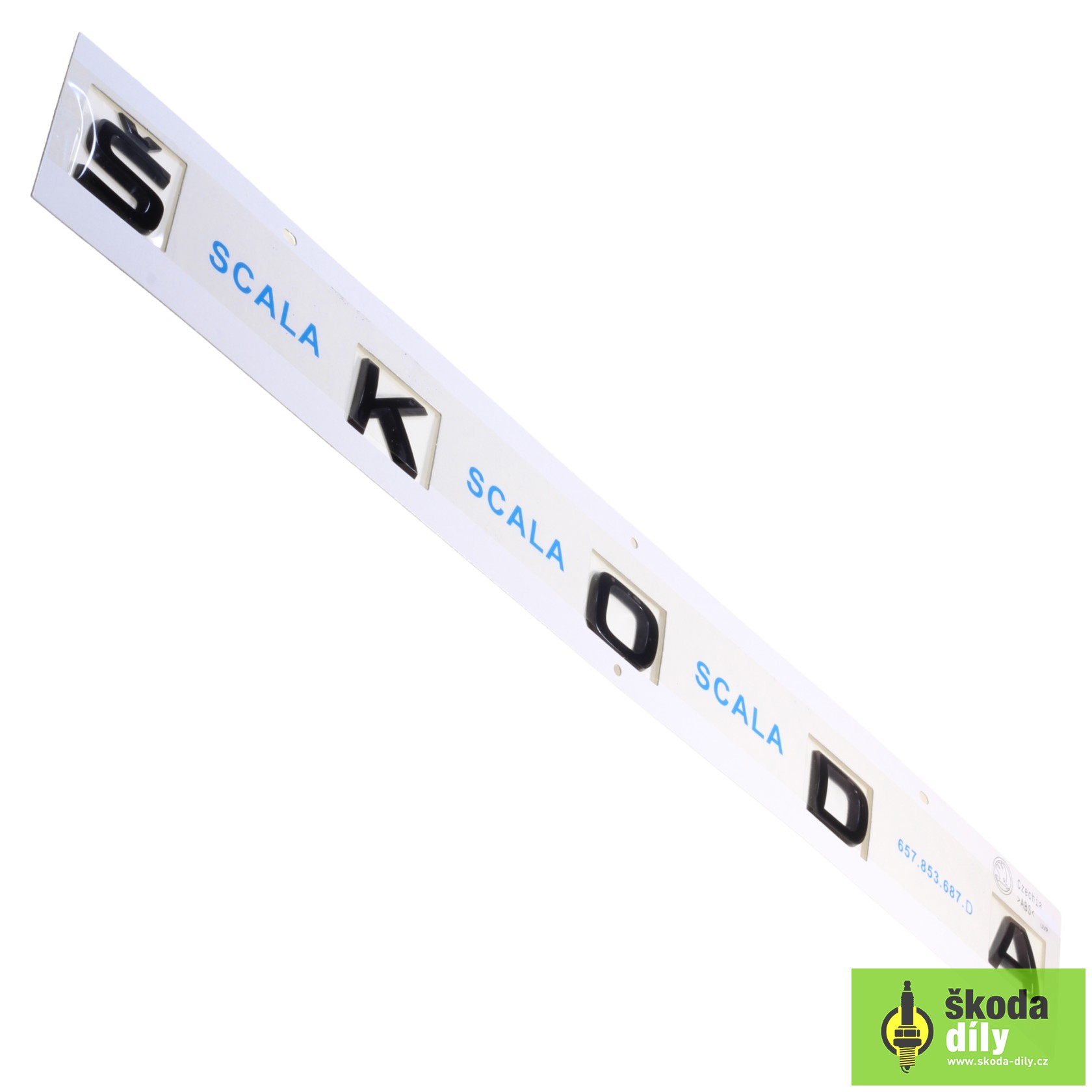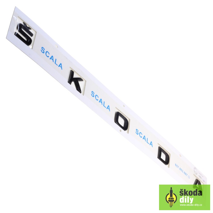 Nápis "ŠKODA" na zadnú časť vozidla, veko kufra, prevedenie čierny lesklá. Určené pre model Scala.